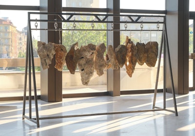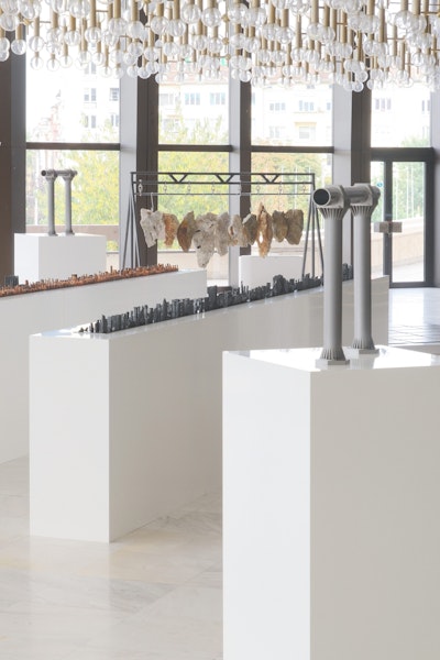This exhibition explores Van Parys’ interest in tectonics, gravity, weight, and matter, while also alluding to infrastructure as spaces of promise. Whether imagining billboards in Chicago as sacred portals, transforming Bulgarian-Turkish water fountains into kinetic installations, observing aerial highways and birds soaring above Brussels, or balancing industrial precision with raw organic form, Van Parys hijacks and appropriates existing symbols and structures, rearranging and juxtaposing elements and materials from the urban and rural landscape in ways that trigger the imagination, merging a critical post-capitalist message with a poetic sacredness. Even today, despite modern secularism and increased order and control, a spiritual life persists. His sculptures, installations, and images seem to offer a setting for that life, but one free of religious ideology or political manipulation. Naturally, his work resonates with the monumental spirit of the National Palace of Culture — built in 1981 as a national symbol of cultural ambition—now caught between past ideology and the search for new meaning.